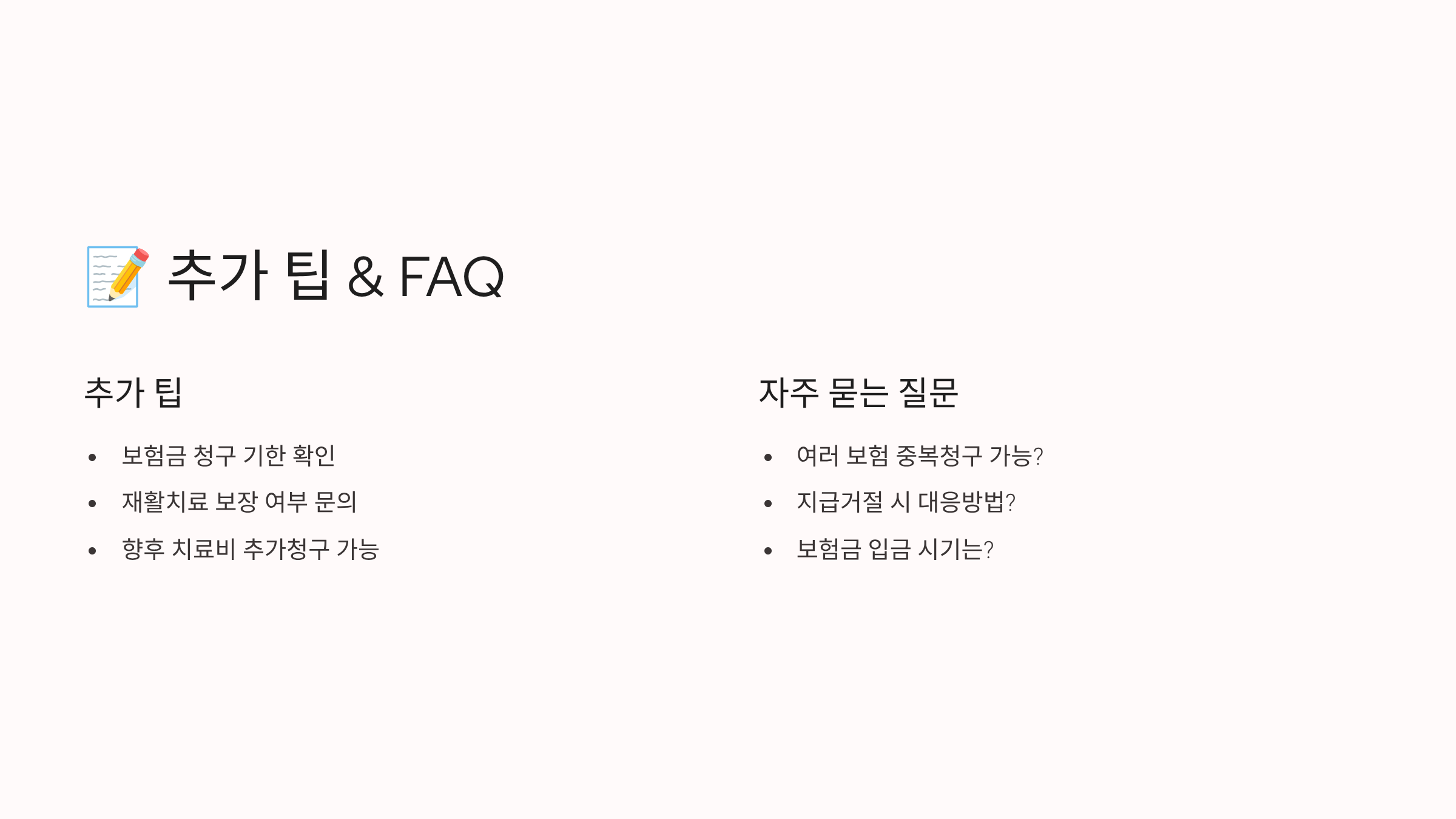 이제 보험금 청구가 어렵지 않게 느껴지셨죠? 간단한 팁만 알아도 수십만 원, 많게는 수백만 원의 차이가 날 수 있어요. 😉