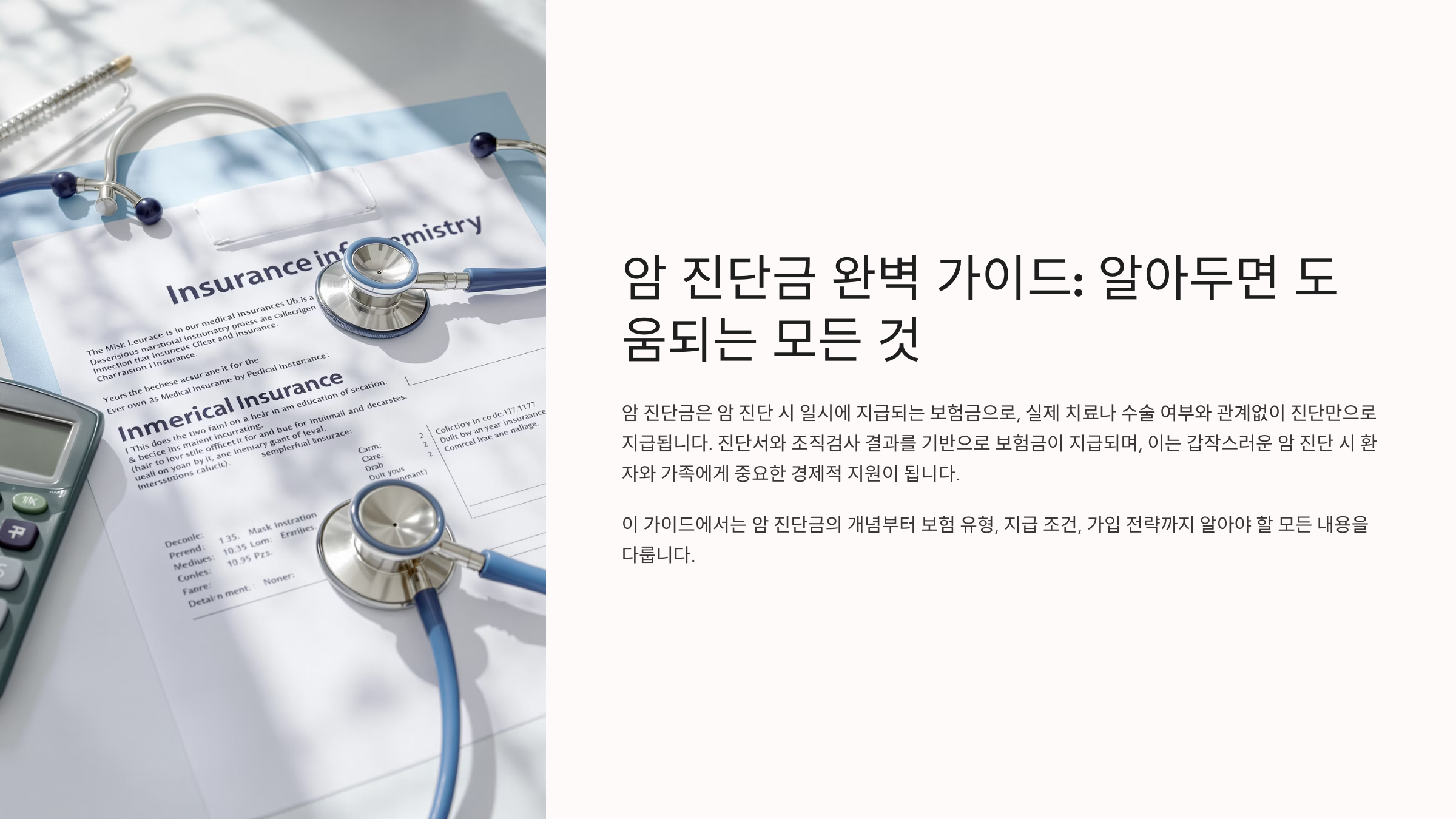 이 진단금은 치료비, 병원비, 생활비로 다양하게 활용될 수 있기 때문에 보험 가입 시 가장 중요하게 여겨지는 항목 중 하나예요.