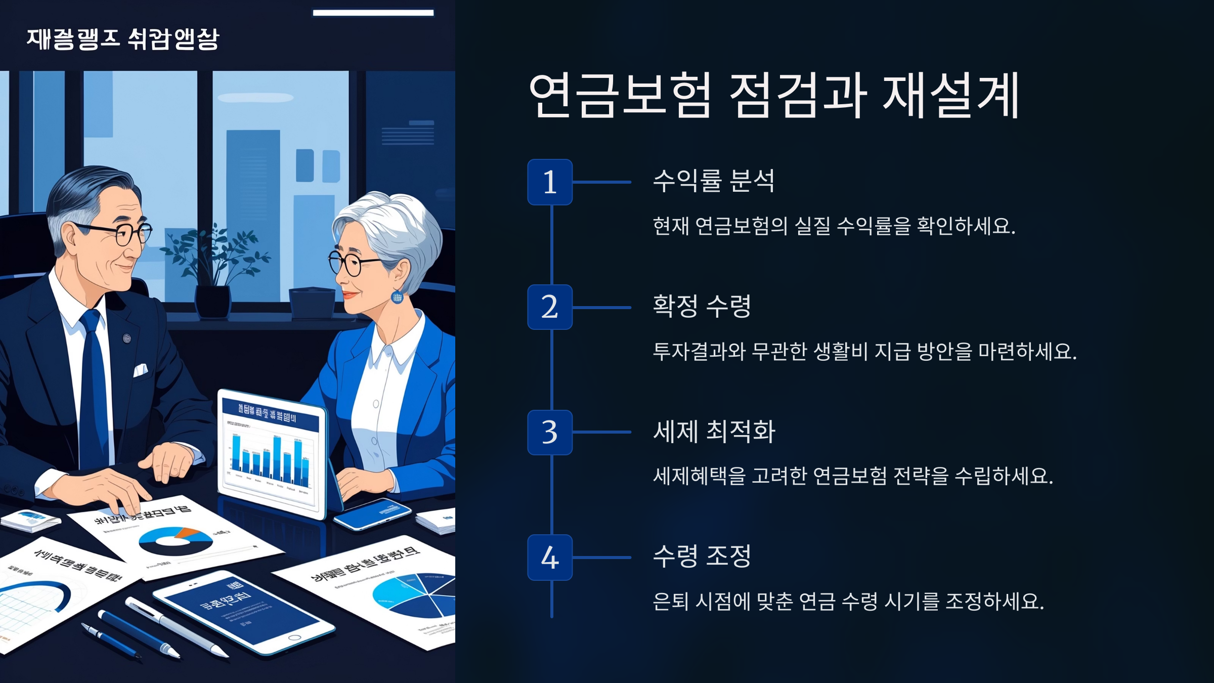 국민연금 외에 추가적인 연금 준비가 없다면 반드시 연금보험이나 연금저축을 점검해야 해요. 50대는 연금 수령까지 시간이 짧아 수익률보다 '안정성'이 중요하거든요.